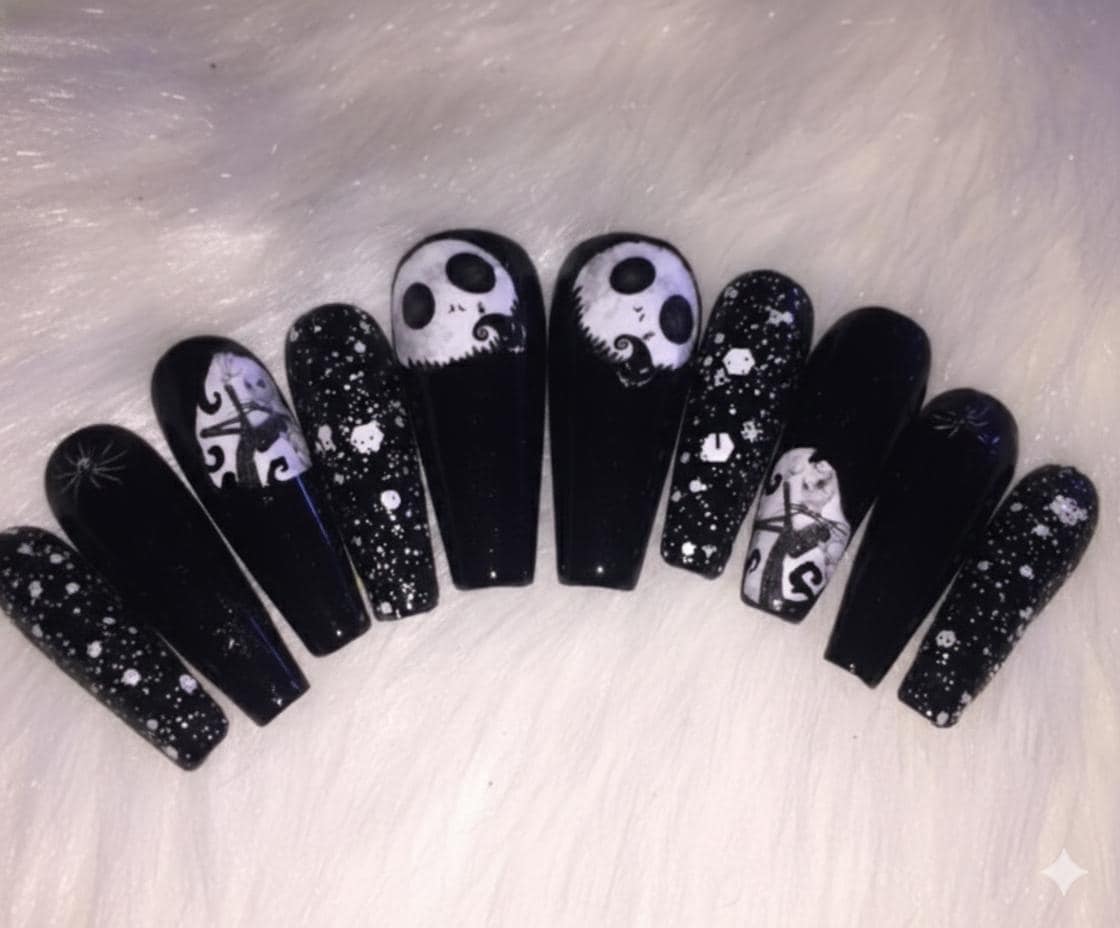 These jack skeleton the nightmare before christmas black and white gothic halloween luxury press on nail set can come in any length n shape