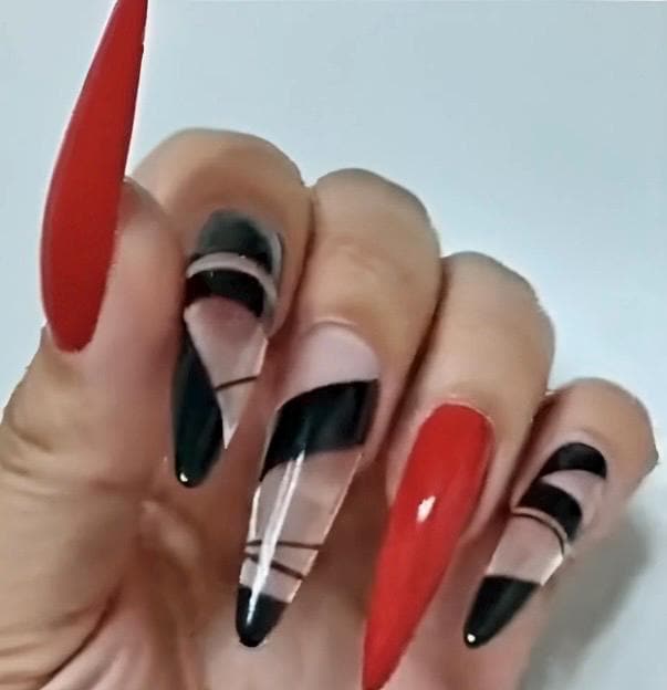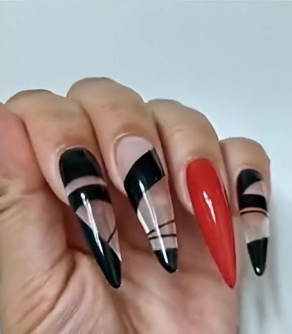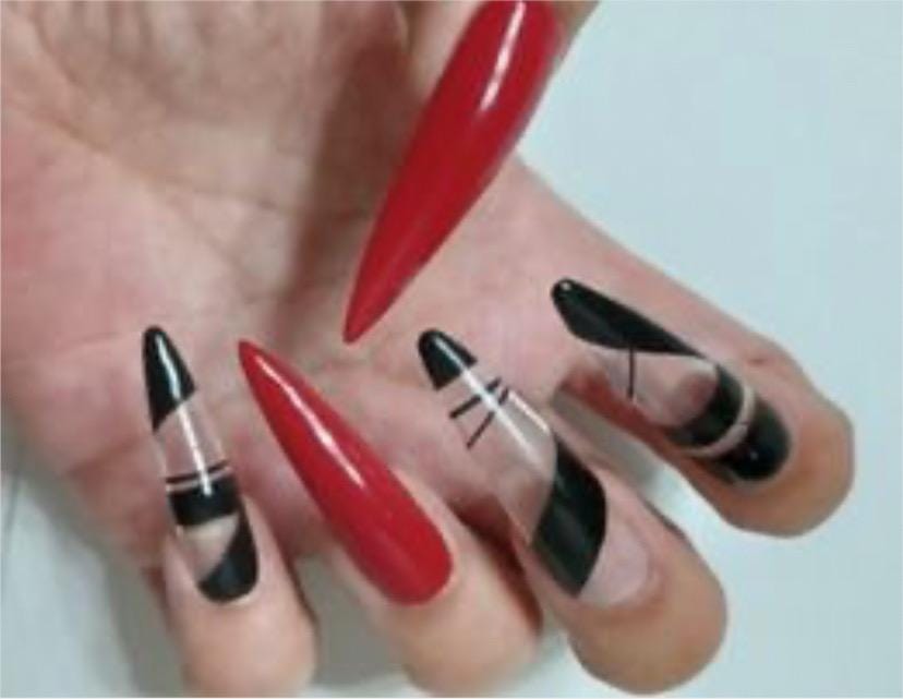 These Red and black negative space gothic halloween luxury press on nails available in any length n shape message for sizing details