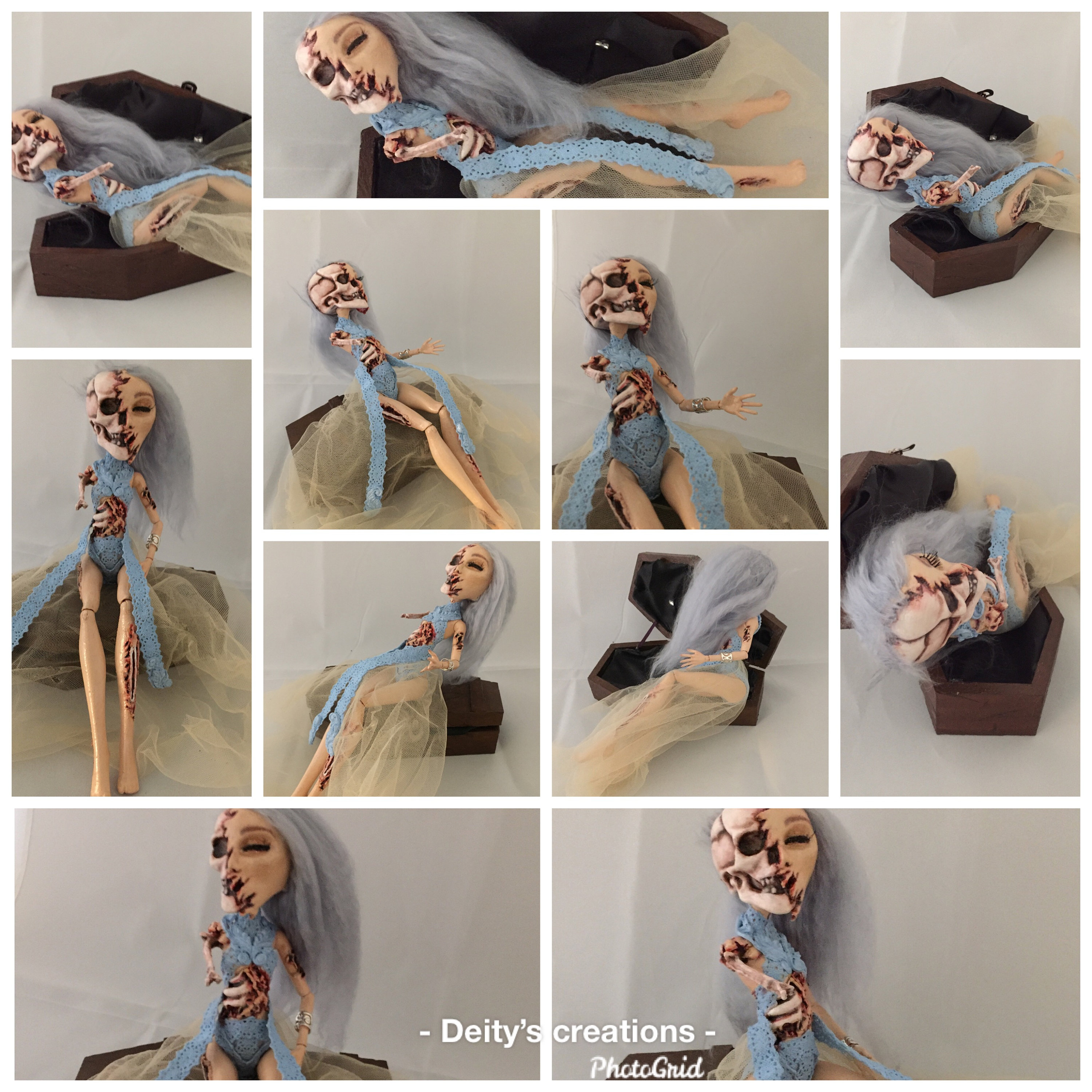Morbid beauty.... first of Deitys Creations new halloween/ goth /horror/ creepy/dark beauty genre of Ooak art dolls .Custom monster high repaints.My dolls can also be made to order. Giving you a chance to fully customize ,from doll theme to colour,hair eyes,skin,props,clothes,etc.. make sure to check back into the shop to see all new additions to the collection.layaway available.